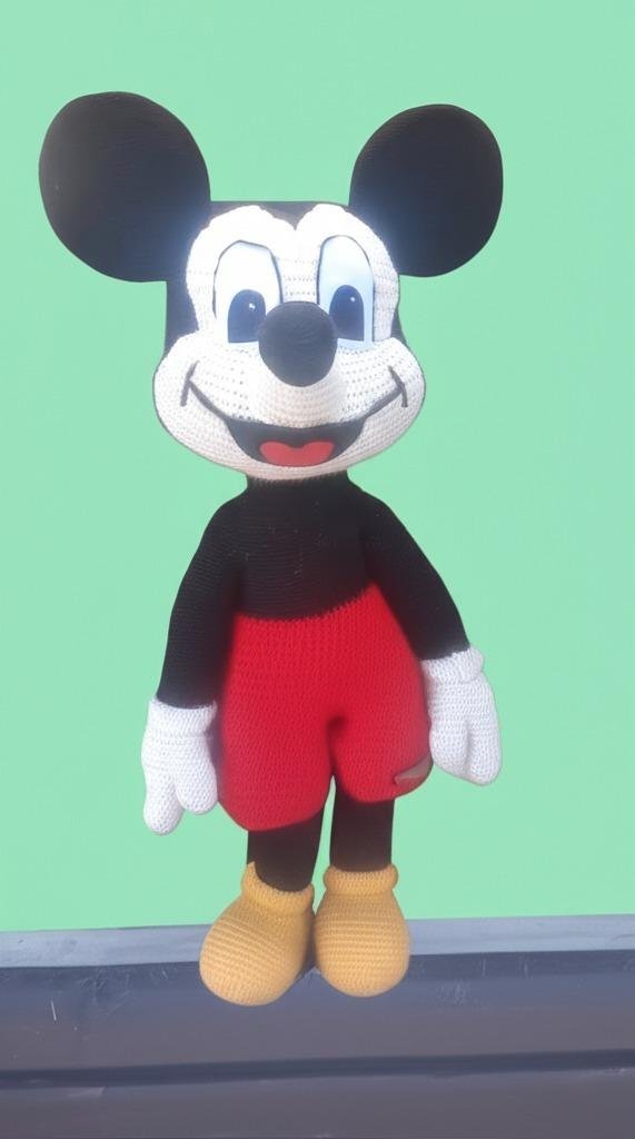 Bu əl işi tikilmiş Mickey Mouse oyuncağı, klassik qara qulaqları, qırmızı şortları və sarı ayaqqabıları ilə tanınan məşhur personajı təsvir edir. Yumşaq ipdən hazırlanmış və gülər ifadəsi ilə diqqət çəkir. Uşaqlar və kolleksiyonerlər üçün ideal dekorativ və oyuncaqdır.